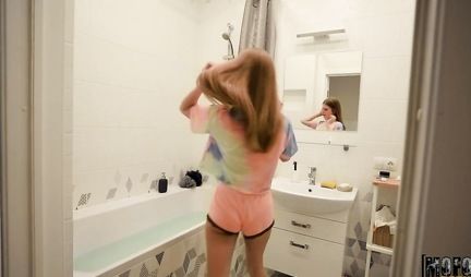Молодая девка хотела принять ванну, но прежде пришлось отсосать