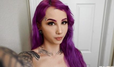 Молодая девушка с татуировками не отказывается от порки и оргазма на кровати