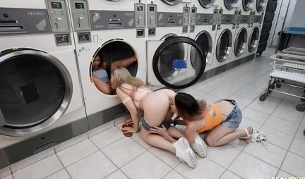Молодая девушка встретила горячих лесбиянок в прачечной