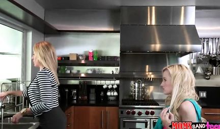 Мачеха запрещает падчерице водить домой парней и девушек для занятий сексом, но разве это остановит начинающую нимофманку от того, чтобы привести бойфренда на хату и заняться сексом, даже не закрыв входную дверь на ключ?! В итоге парочка попадает на глаза зрелой бабенки, которая соглашается не вызывать полицию при условии, если ее возьмут в долю. В итоге бурный групповой секс по принципу шведской семьи и, похоже, в профите в этом случае сама зрелая леди.