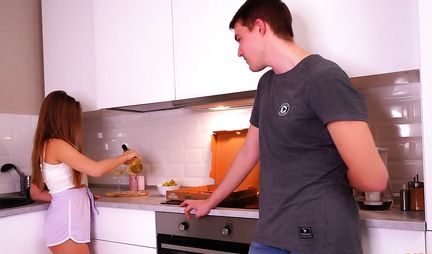 Молодая русская телочка лакомится пиццей со свежей спермой