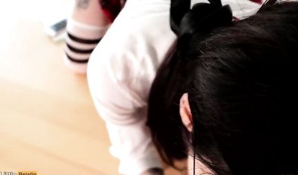 Симпатичная соседка, которая учится в выпускном классе местного колледжа пригласила парня навестить ее под вечер, чтобы помочь с решением одной особо сложной задачи. Ну а когда тот пришел, милашка просто соблазнила его на секс на столе, предварительно спросив разрешения выложить запись на снэпчат. Да, вот так люди зачастую становятся известными на весь мир, сами того не ведая.