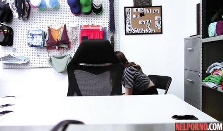 Если выбираешь путь самой обычной магазинной воровки, то будь готова к абсолютно разным неожиданностям. Вот взять к примеру так говорили привлекательной дамочке Ши Блейз перед первым воровством в местном супермаркете. Потом было второе, третье... Но наконец телка палится перед местной охраной и в итоге ее с реальным пристрастием допрашивает начальник этой самой охраны. Ну да минет и трах раком на столе вовсе не вырванные ногти и переломанные кости. От подобной экзекуции только оргазмы и это гуд!