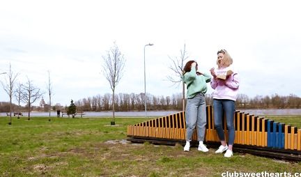 Молоденькие лесбиянки вылизывают друг другу выбритые отверстия и кончают