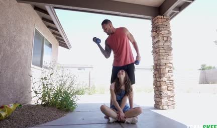 Молодую телочку брутальный парень трахает на весу