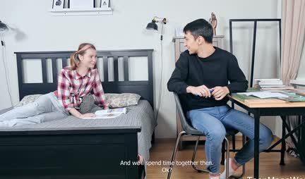 Симпатичная подруга желает от товарища развлечений и потому зовет его на улицу, но к нему уже пришла подружка, которая тоже рассчитывает как следует оттянуться на пару с чуваком... Собственно для этого она и старается и даже кое что удается получить... И очень хорошо, что вернувшаяся подруга не стала кипишить...