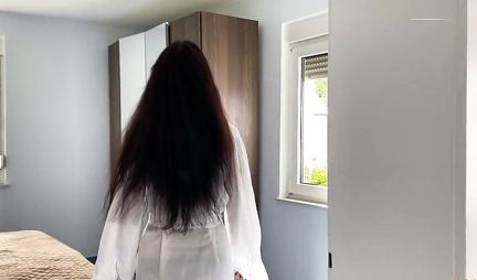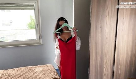 Извечная проблема женщин что сегодня надеть на улицу легко решается с помощью любимого друга. Так сегодня поутру сочная брюнетка не знает в чем пойти на работу, но с подачи дружка надевает импозантное черное платье. В итоге любимый не может удержаться от того, чтобы не трахнуть зазнобу и как следствие та опаздывает на работу. Как будто нельзя было одеть джинсы и блузку в стандартном варианте?!