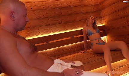Мужик с большим членом классно трахает молодую сучку в сауне
