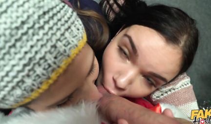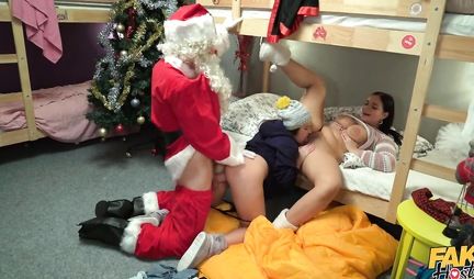Мужик в костюме санты трахает компанию неудовлетворенных телочек
