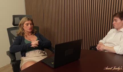 Кто бы мог подумать, что увольнение из компании зачастую дает не минусы, а очень даже большие и жирные плюсы. Вот и эта зрелая дамочка в очередной раз объясняет это кому-то из управленцев, а после просто уединяется с молодым сотрудником и занимается с ним сексом с удовольствием для себя! И все вроде бы так, но, к сожалению, далеко не на всех фирмах такие очаровательные сексуальные сотрудницы!...