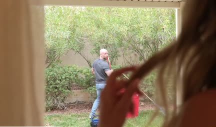 Опытная блондинка в чулках повеселилась с лысым соседом