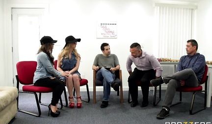 Когда супруга Кейрана Ли находит пару порносайтов в журнале истории его компьютера, то быстро определяет мужичка в группу по лечению порно зависимости. Но вряд ли она догадывается что именно там мужичок находит двух симпатичных дамочек, которые используют это собрание для поиска новых больших членов. Познакомившись с новым участником подруги тестируют его член в групповом секса и таки находят что он им очень даже подходит.