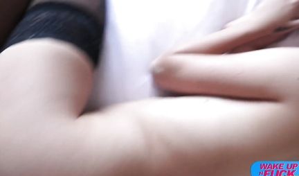 Парень и его подружка в чулках занимаются сексом втроем вместе с двойным проникновением