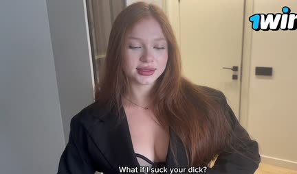 Парень рыженькую подругу угостил сладким членом
