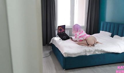 Если есть на свете ангелочки, то они натурально выглядят как эта симпатичная чикса с красивой фигурой и сиреневыми волосами. Ну а если она смотрит хентай и дрочит при этом, то грех будет ее товарищу, который забил на подругу болт и не трахает ее от слова совсем. Впрочем чуть позже он все-таки появляется в кадре и дерет стройняшку явно не с тем жаром и пылом, какого она заслуживает. Бесспорно деваху заждались у Легалов - к бабке не ходи.