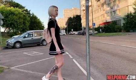 Парень снял молодую худую блондинку и трахнул ее в ротик своим членом