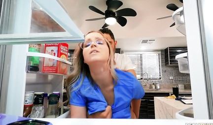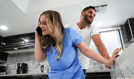 Ну вот почему-то некоторые не любят студии, а предпочитают жить в квартирах с комнатами. Но к счастью это абсолютно не касается этого товарища, у которого красивая грудастая жена. И если раньше, забежав домой на обед, женщина пряталась по разным комнатам, успевая даже перекусить или поспать, то теперь она перекусывает исключительно во время того как ее трахает муж, а вот насчет сна - тут не поспишь, однако!