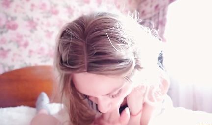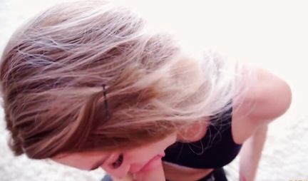 Парень трахает в рот и киску блондинку, снимая домашнее порно