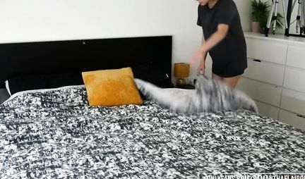 Парочка любит трахаться на кровати и снимать домашнее порно