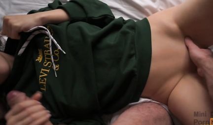 Подружка с большими дойками задрала футболку для домашнего секса с другом