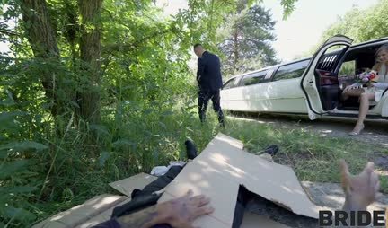 Ну по идее в том, что молодые люди перед свадьбой заехали по пути помочиться - вполне нормальное явление. А если при этом они еще и планировали потрахаться - это вообще супер. Ну и пока молодые супруги ласкали друг друга, какой-то бомжара сумел проникнуть в свадебный эскорт и чуть было не отдал женушку для секса бродяге. Впрочем, тот не стал медлить и обильно обкончал в машине все места до которых только смог дотянуться!