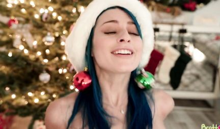 И пусть этот хлопец вроде бы как не при делах по поводу Рождества, но он рад не только презентам, а и тому факту, что может подсмотреть за ярой мастурбацией сводной сестры, которая выкрасила волосы на голове в голубой цвет. Но, похоже, одна лишь мастурбация далеко не по душе няшке, а потому она еще и соблазняет брателлу на домашний секс! Ну хорошо что хоть он - не голубой, в отличие от сеструхи.
