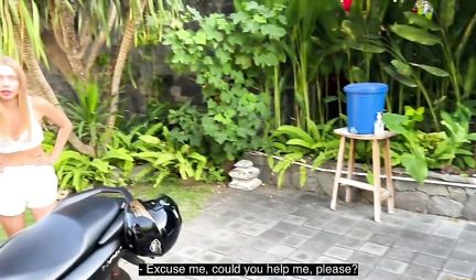 Катаясь по округе на байке чикса ловит на колесо саморез и просит помощи у первого попавшегося парня. Тот советует ей ничего не делать, а девушка предлагает заняться сексом. У блондинки дома муж, поэтому пара едет в гости к чуваку, а уже здесь вовсю занимается сексом без каких-либо моральных ограничений и препон. Осталось только определить это происходит в реале или товарищу сниться чудесный сон?!