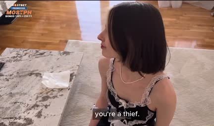 Я, как настоящий джентльмен решил сделать подарок своей девушке, наняв уборщицу, которая должна сделать глубокий клининг за двадцать евро. Ну так по факту девушка слегка увлеклась и подломила ожерелье и стопку лавандоса. Конечно, она включила режим дурочки, но когда договорились на минет с сексом - очень быстро согласилась и теперь единственная проблема успеть кончить до прихода любимого человека!