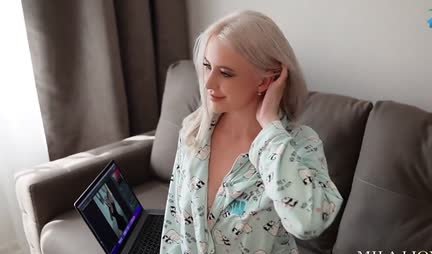 Соседка по этажу давно ждет парня в гости и тот приходит как обещал. Красивая блондинка ожидает его в весьма эротическом прикиде и чуть ли не с порога дико возбуждает своим аппетитным телом. Но откладывать секс в долгий ящик явно не самое любимое занятие этой девушки и потому она сначала сосет хрен, а уже потом дает трахать себя в самых изысканных и любимых позах.