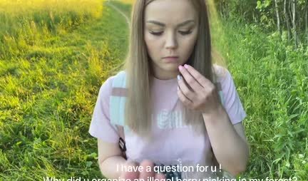 Алекса Миллс как настоящий городской житель на пару с мужем пошла в лес, набрала ягод, но потеряла супруга. По чистой случайности она вышла на лесника, который предъявил ей за сбор ягод и обещал оштрафовать. Ну а по факту у чиксы нет ни денег, ни супруга и поэтому максимум что с ней можно сделать - как следует отодрать, заведя в чащу. Ну так девушка и не возражает против подобного наказания, а совсем наоборот. Ну в процессе совокупления с представителем власти находится потерянный муж. Ну вот такой зеленый хеппи-енд.