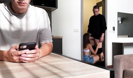 Коварству подруги русского парня нет предела. Подарив другу наушники, чтобы тот слушал любимую музыку, она впускает в квартиру кавалера, которого затем впускает в себя в прихожей. Да что там говорить: коварству изменщицы нет прощения, тем более каждый может оказаться на его месте... а может и на месте любовника, что в корне меняет всю картину!...