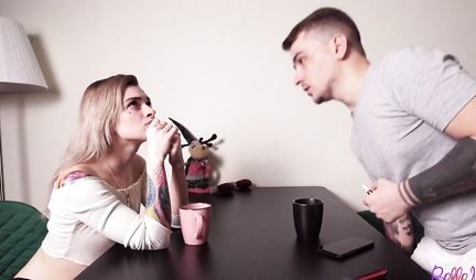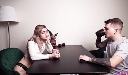 Русская девушка на кровати делает другу домашний минет и прыгает на члене