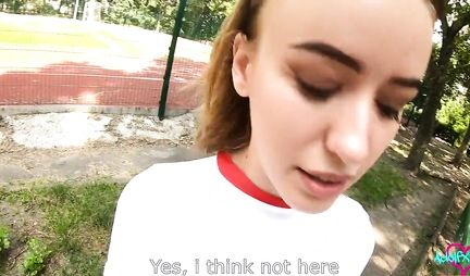 Русская девушка на публике подставляет сочную дырочку для реального траха