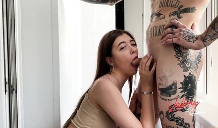Русская девушка открыла ротик для глубокого королевского минета своему другу