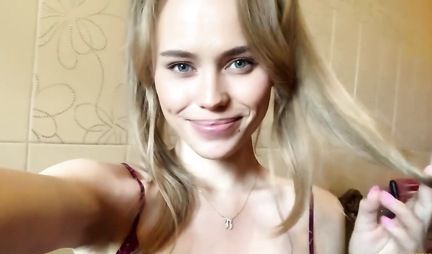 Русская девушка показала пилотку и настроила парня на секс