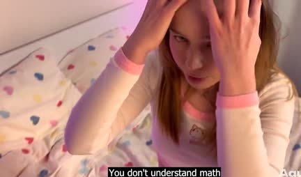 За этот семестр моя сводная сестрица получила пять по математике и в этом исключительно моя заслуга. Дело в том, что я делаю домашнее задание за нее, а Аква выполняет иногда мои мелкие прихоти. Вот и сегодня в 01:14 я прошу девушку сделать мне минет и та послушно сосет уже давно вставший пенис. В 06:48 я сношаю девицу в почти миссионерской позиции, а в 11:01 она уже бодро и весело скачет на херу верхом. В 14:20 мы практикуем половое сношение в догги-стайл, после которого я не могу удержаться и не кончить девушке на язычок. А вы говорите что от знаниям математики нет практической пользы... Так ведь вот она - на языке сводной сестры!