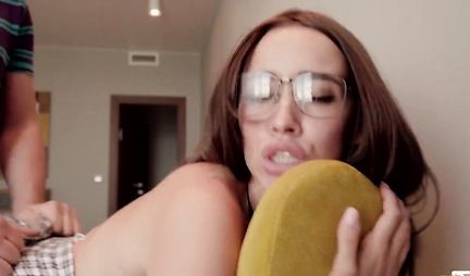Русская девушка в очках после минета уже готова для домашнего порно на камеру