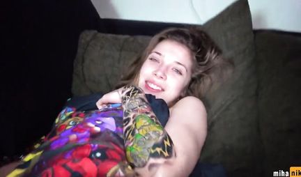 Русская девушка во время домашнего порно кончает и принимает сперму