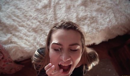 Русская девушка во время домашнего порно раздвигает ноги в чулках и кончает на члене