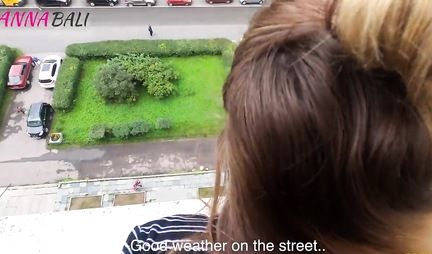 Русская дома встала раком у окна и поебалась в одежду с соседом