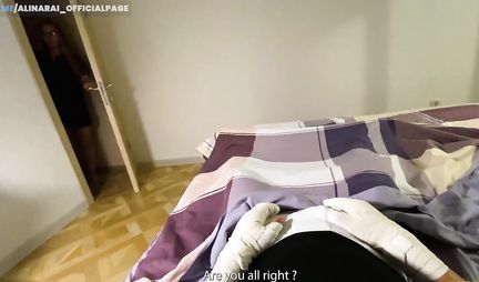 Пасынок не слушался мачеху и поэтому поломал сразу две руки. Ну так мало того что он теперь не может дрочить, так и почесать елду для него реальная проблема. Впрочем для ее решения более чем подходит мачеха, которая всеми силами старается помочь парню. Ну а если ей в время выполнения этой миссии хочется пососать возбужденный член и отдаться больному в позиции догги-стайл, то определенно паренек совсем не против. Вот только кончать в мачеху далеко не лучший вариант... а он кончает!