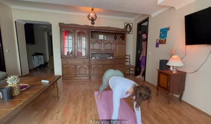 Моя очаровательная мачеха считает что все беды у человека от отсутствия регулярного секса. Понимая что только отсутствие физических нагрузок или водки могут сделать ее страшной и некрасивой для простых обывателей мужского пола, она регулярное делает дома фитнес и прочий воркаут, на который я смотрю с интересом, потому что жопа у мачехи выглядит на пять с плюсом. Когда я наблюдаю за растяжкой мамашки, она в 03:32 просит помочь ей и во время наших совместных физических упражнений, она максимально близко прижимается своими булками к моему стоячему концу. В результате я засаживаю стояк между ягодиц мачехи в 10:44, а та насаживается в догги-стайл и пользует в разных позах, пока я не кончаю в 22:07. Ну, в целом мне понравилось...