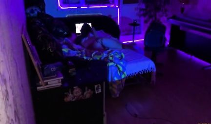 Русская парочка любовников перед телевизором снимают домашнее порно