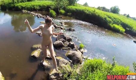 И пусть у русского молодого человека нет настоящего удостоверения сотрудника МЧС по оказанию неотложной в экстремальных ситуациях помощи очень милым с виду телкам, но он шит не лыком, а потому знает как согреть любимую знакомую, которая полезла купаться в воду в деревенской речушке и таки замерзла по полной программе. Большой член и бурный секс на природе способен разогреть даже снежную королеву и с этой красавицей все получается более чем замечательно. Так что запомните, если кто-то замерзает - оттрахайте несчастную и будет вам благодарность и уважение!