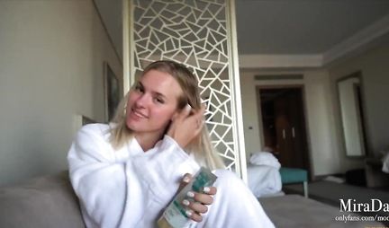 Етить-колотить, - в очередной раз заявляет русская блондинка, когда ее муж призывает ее побаловаться с его членом, благо тот стоит как квартирный вопрос в России. Ну так девушка и рада бы отказаться, но сделать это не так-то просто. Потому она смазывает пенис друга смазкой и дрочит как хочет. Через это у товарища возникает сильное желание и он жарит супругу в догги-стайл и даже кончает, что неудивительно ввиду красоты подруги.