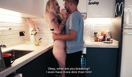 Батя свалил в другой город на дальнобое и теперь его жена, а моя мачеха в полуголом виде ходит по дому, явно нарываясь на мой конец. Шлепнув блондинку по жопе, я самым нахальным образом, суют член ей в рот, а после и дрючу на кухонном столе. Ну а чего теряться - должен же кто-то удовлетворять голодную женщину, если кроме меня ее некому трахать... по крайней мере на текущий момент.