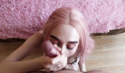 Русская с розовыми волосами качественно делает минет симпатичному другу
