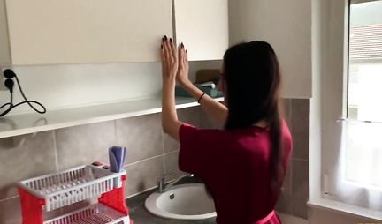 Как известно есть больше всего хочется ближе к ночи. Вот и симпатичная русская брюнетка хочет чего-нибудь заточить, но обнаруживает что соль у нее закончилось. Приходится шалунье идти к соседу и просить у него подобную шнягу. Но ее нет и у товарища и взамен тот предлагает член на отсос, а потом и просто потыкаться... Вот как бывает - пришла за солью, а получила хрен с сексом.