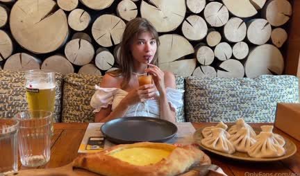 Вообще Аня Ральфс любит грузин и в частности хинкали. Ну а если нет ни того, ни другого, девушка очень тоскует и страдает и активно налегает на пиво. Но сегодня один далеко не бедный товарищ решил угостить девушку хинкали и слегка развлечь заскучавшую деваху. Ну а та в полной мере оценила жест доброй воли и в 02:28 завела товарища в туалет заведения и сделала отличный минет с окончанием на лицо. Ну, видимо за шашлык ее можно было бы нашампурить на хер, а за сервелат жестко дернуть в зад!