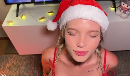 Русская телочка в сексуальном белье дарит секс на Новый год